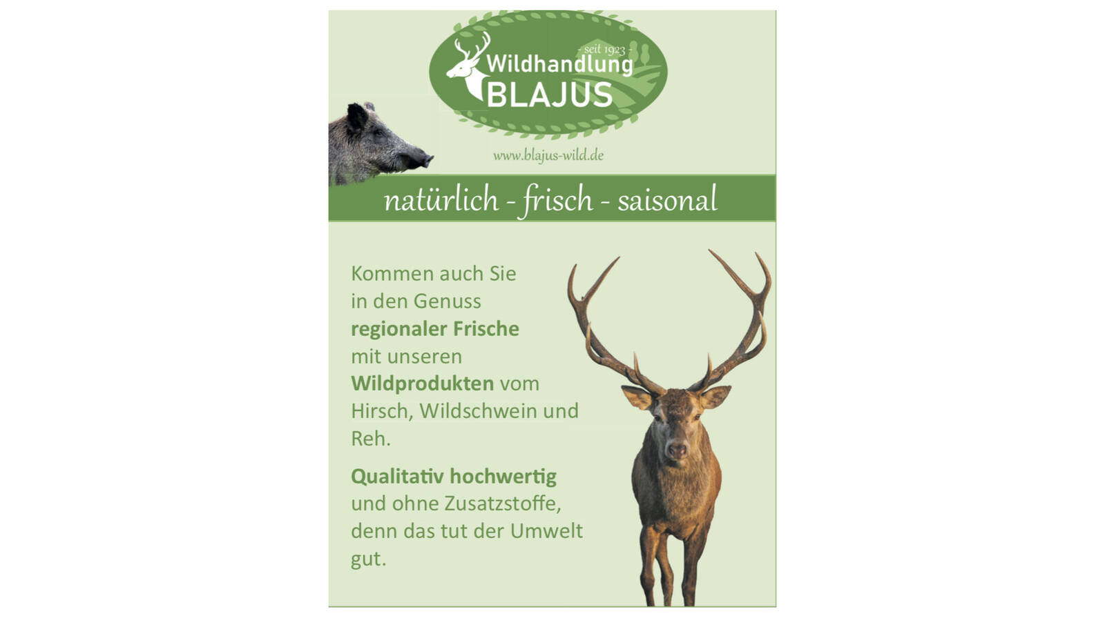 Wir sind ein Groß- und Einzelhandelsbetrieb von Wildprodukten vom Hirsch, Wildschwein und Reh. Wir beziehen ausschließlich aus heimischen Revieren (kein Import). Das amtlich untersuchte Wild wird in eigenem Betrieb verarbeitet und als Keule, Rücken, Blatt, Gulasch und Edelgulasch ausgeliefert. Wir bieten aber auch ganze Stücke an, auf Wunsch küchenfertig zerlegt und verpackt.